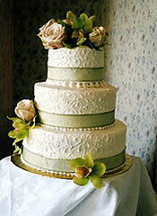 Couple's choice of wedding cake Linen tablecloths Elegant Plastic ware for Tables Wedding decoration on arch and tables to match bridal flowers Bridal Bouquet Grooms Boutonniere Light Buffet Reception to include: Selection of Fruits, Vegetables and Cheeses Selection of pastries |